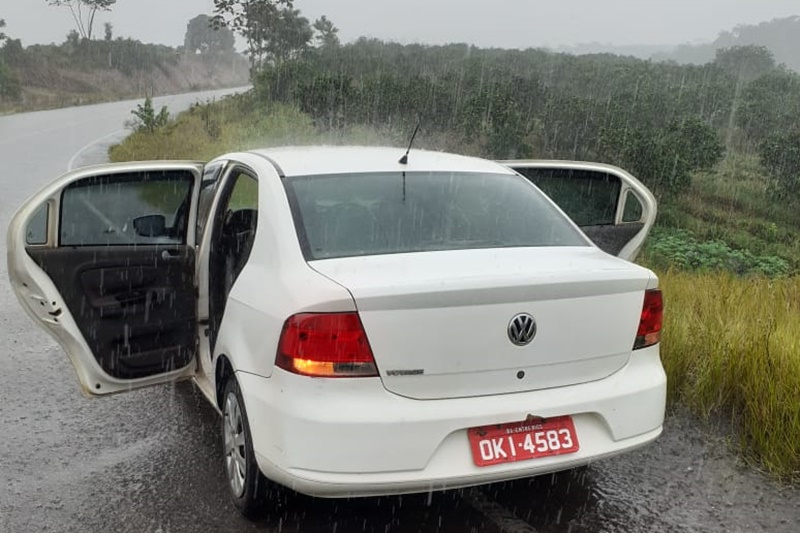 Em diligência, a equipe localizou o veículo modelo Voyage, cor branca, placa OKI-4583, abandonado na Rodovia Estadual SE-488, próximo à cidade de Indiaroba.