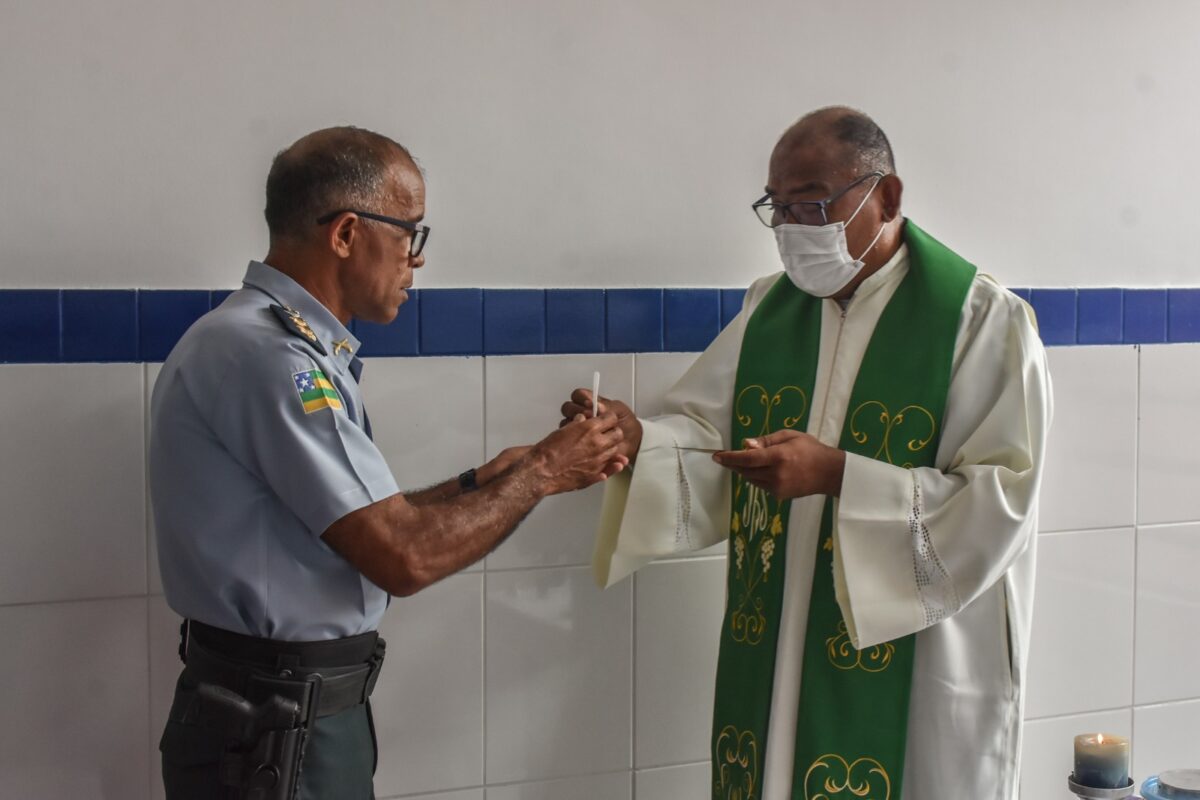 25 de setembro de 2024Na manhã desta quarta-feira (25), foi realizada a primeira missa nas novas instalações do Quartel do Comando Geral da Polícia Militar de Sergipe, marcando o início de uma nova tradição espiritual no ambiente militar. A celebração, que contou com a presença de oficiais e praças, foi conduzida pelo capelão da corporação, major Juarez, e destacou-se pelo senso de comunidade e renovação de fé entre os presentes.