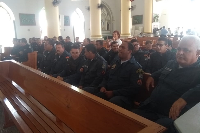 Logo após a missa, foi realizada uma formatura com a participação dos policiais militares do Batalhão, oportunidade em que foi escolhido e homenageado pelo Comando da Unidade, o cabo Júnior Pereira, como Policial Militar Padrão do mês de maio.