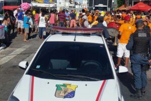 Em meio à ocorrência, Reginaldo, precisou ser algemado e chegou a se chocar contra uma das barracas instaladas no evento, vindo a se machucar. Mesmo no Posto de Comando da festividade, o infrator não se acalmou. O caso foi conduzido à Delegacia Plantonista para as providências cabíveis.