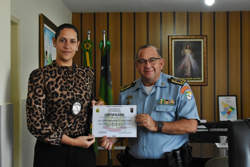 22 de agosto de 2023O comandante-geral da Polícia Militar de Sergipe, coronel Alexsandro Ribeiro, recepcionou à capitã Belisa Melo de França. De volta a Aracaju, após a conclusão em 1º lugar do VI Curso de Capacitação de Negociação em Crises, realizado no Estado do Paraná, a oficial foi recebida na manhã desta terça-feira, 22, no Quartel do Comando Geral.
