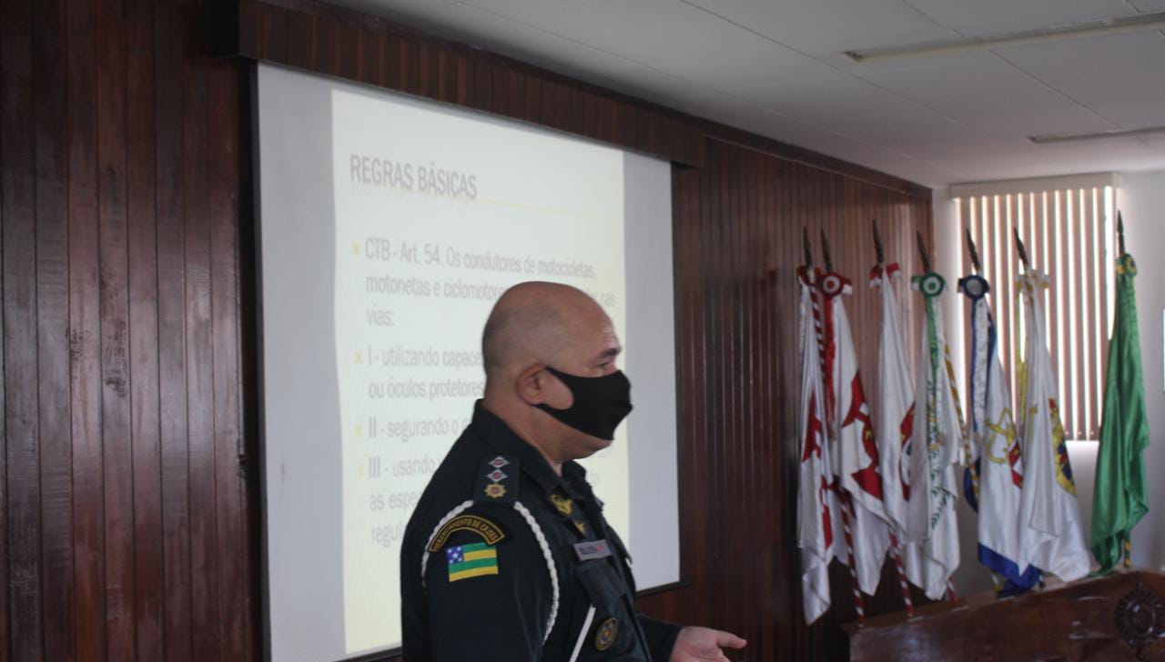 Foram repassadas na primeira parte da instrução as modificações atuais sobre o Código de Trânsito Brasileiro, bem como toda a legislação de utilização de motos no trânsito.