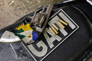 Durante a revista pessoal, foi apreendido um revólver calibre 38 contendo quatro munições intactas.