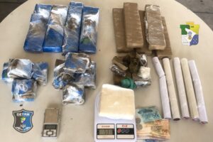 Durante abordagem a primeira casa, localizada na Rua ‘P’, as equipes operacionais encontraram 6,620 quilos de maconha e uma balança de precisão. Já no segundo ponto denunciado foram apreendidos 5,070 quilos de maconha, 520 gramas de cocaína, uma balança de precisão e a quantia de R$ 548,10. Em ambos os endereços, os suspeitos fugiram no momento da chegada das viaturas.