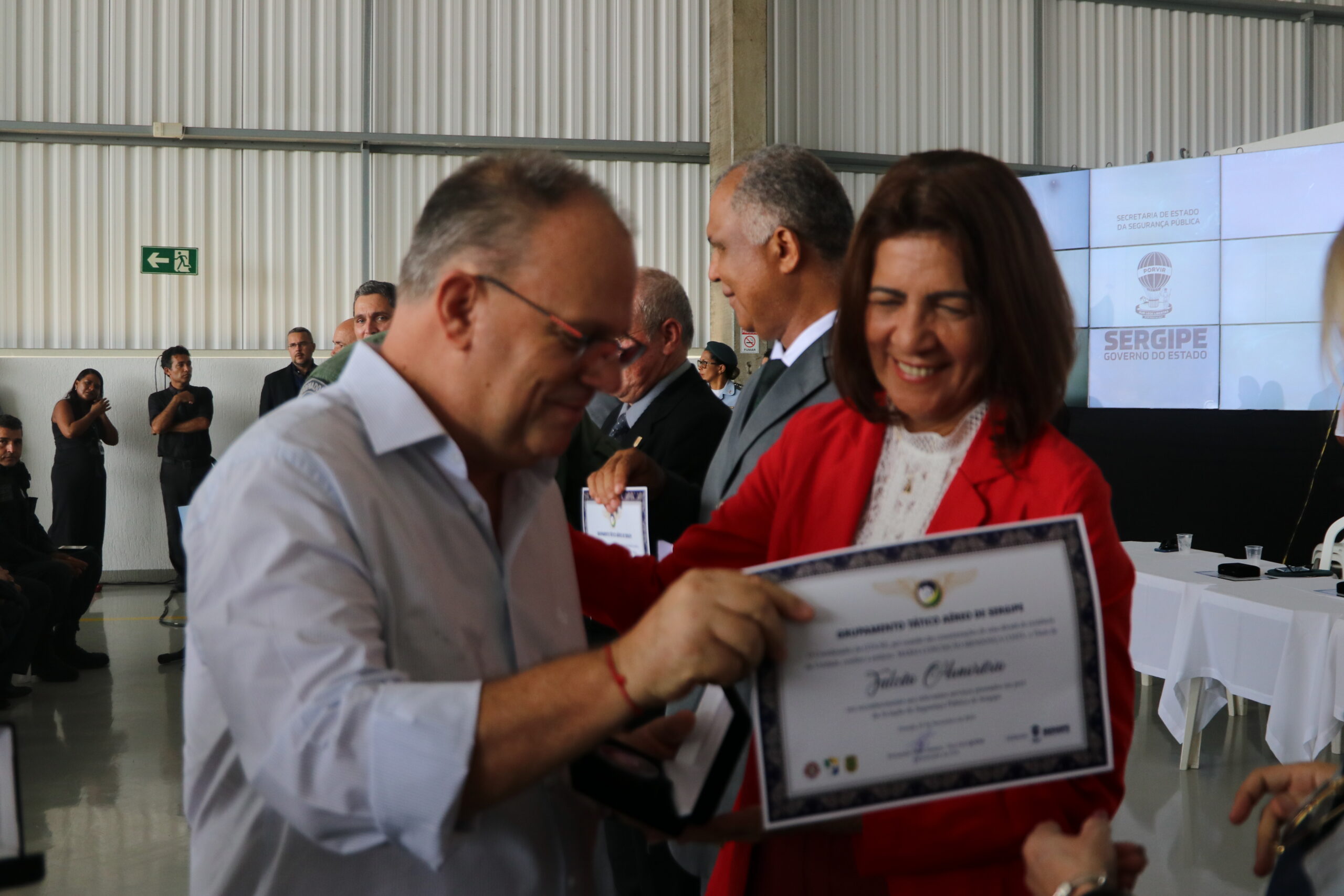 O ex-governador Marcelo Déda, responsável pela instalação do Grupo foi homenageado “in memorian”. “O nosso Grupamento Tático Aéreo é um dos melhores do Brasil, trabalha com muita competência, seriedade, com muito amor pelo que faz. A missão maior é ajudar, salvar e cuidar da nossa gente, e Marcelo Déda onde ele estiver, com certeza, está feliz”, destacou a vice-governadora Eliane Aquino.