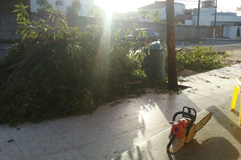 A guarnição policial, composta pelo cabo Galdêncio e os soldados Michele e Wanderley, em rondas ostensivas no bairro Jabotiana, por volta das 16h, visualizou um suspeito cortando uma árvore, em via pública, com uso de motosserra.