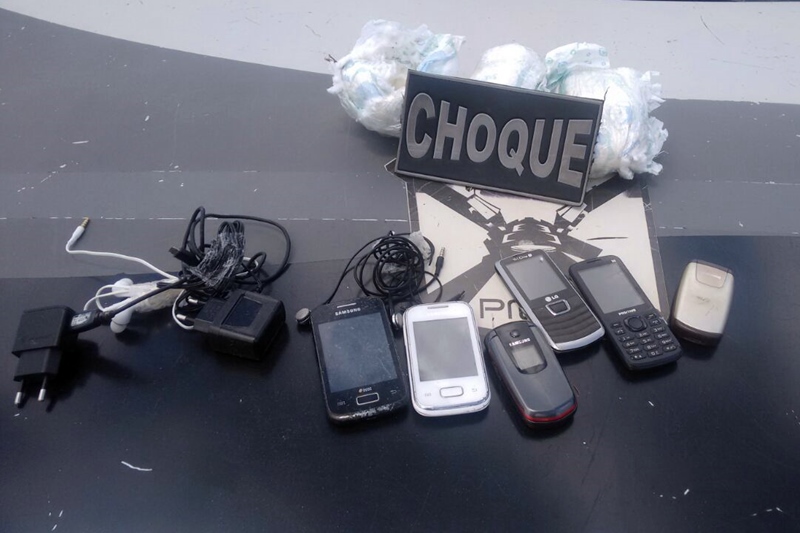 Os militares realizavam o policiamento ostensivo na área externa, quando perceberam um homem arremessando uma trouxa revestida por fraldas descartáveis por cima do muro do presidio. De imediato, os policiais do Batalhão de Choque abordaram o suspeito, e após a varredura do local, encontraram mais duas trouxas, contendo seis celulares, dois carregadores e dois fones de ouvido.