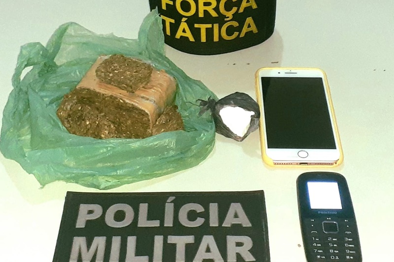 Os militares revistaram a bolsa e encontraram 290g de substância análoga à maconha e 50g análoga à cocaína.