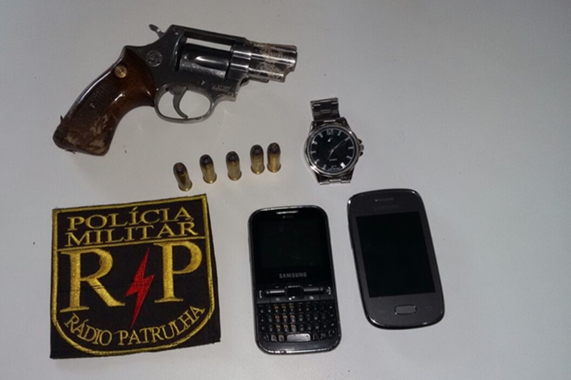 Os policiais efetuaram buscas na região e conseguiu deter a dupla, que ainda tentou fugir. Após abordagem, a PM apreendeu um revólver calibre 38 com cinco munições, dois aparelhos celulares pertences às vitimas que efetuaram a denúncia e uma bicicleta. O caso foi encaminhado à Delegacia Plantonista.