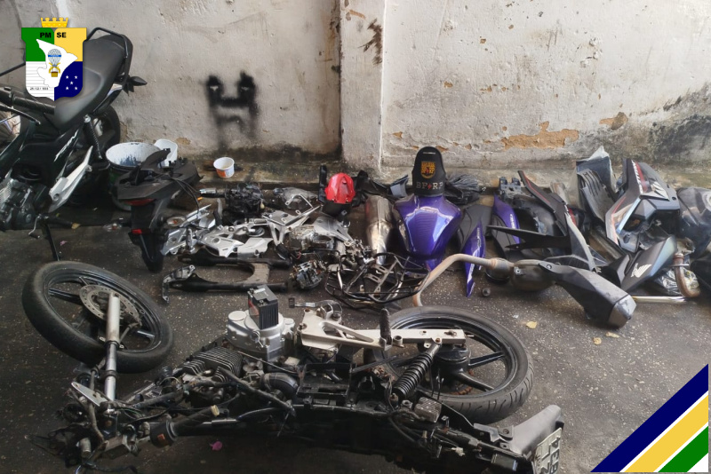 Ao chegarem ao imóvel, os policiais encontraram diversas peças de motocicletas, além de um veículo com fortes indícios de ter sido roubado.