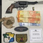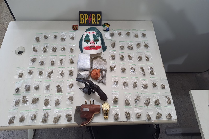 Ainda na ação, um revólver calibre .38 com três munições, 750 gramas de maconha e quatro invólucros de cocaína foram apreendidos na residência dele.