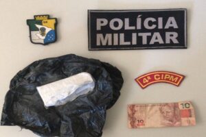 Conforme a equipe, o suspeito foi preso mediante uma denúncia de tráfico de drogas, às 11h35. No momento, ele foi flagrado com 200 gramas de cocaína e uma cédula de R$ 10,00 na Avenida Lourival Batista.