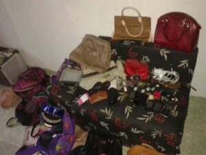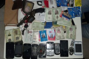 Após encontrar o quarteto no veículo, a PM foi levada à casa onde o grupo guardava os produtos. No local, foram apreendidos um revólver calibre 38, duas munições intactas, seis trouxas com cocaína, dois papelotes de maconha, três capacetes, uma motoneta Shineray, de cor vermelha, um toca CD, nove bolsas femininas, quatro bornais, um facão, nove aparelhos de telefonia celular, dois relógios, a quantia de R$ 414, dentre outros objetos originários de assaltos praticados. Destacando que a quadrilha priorizava assaltar mulheres, em razão da maior vulnerabilidade. A ocorrência foi conduzida à Delegacia Plantonista.