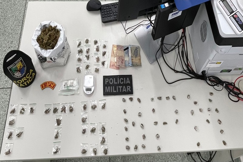 Ainda segundo as informações, os militares apreenderam outra quantidade maior de maconha a granel, do tipo “flor”, e mais 30 invólucros, balança de precisão e uma quantia em dinheiro. No total, 475 gramas de maconha foram apreendidas.