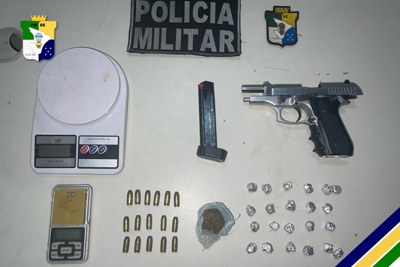 Como resultado, os PMs encontraram 23 papelotes de maconha e duas balanças de precisão em posse dos suspeitos. Além do entorpecente, um dos suspeitos foi flagrado com uma pistola calibre .380 e 16 munições.
