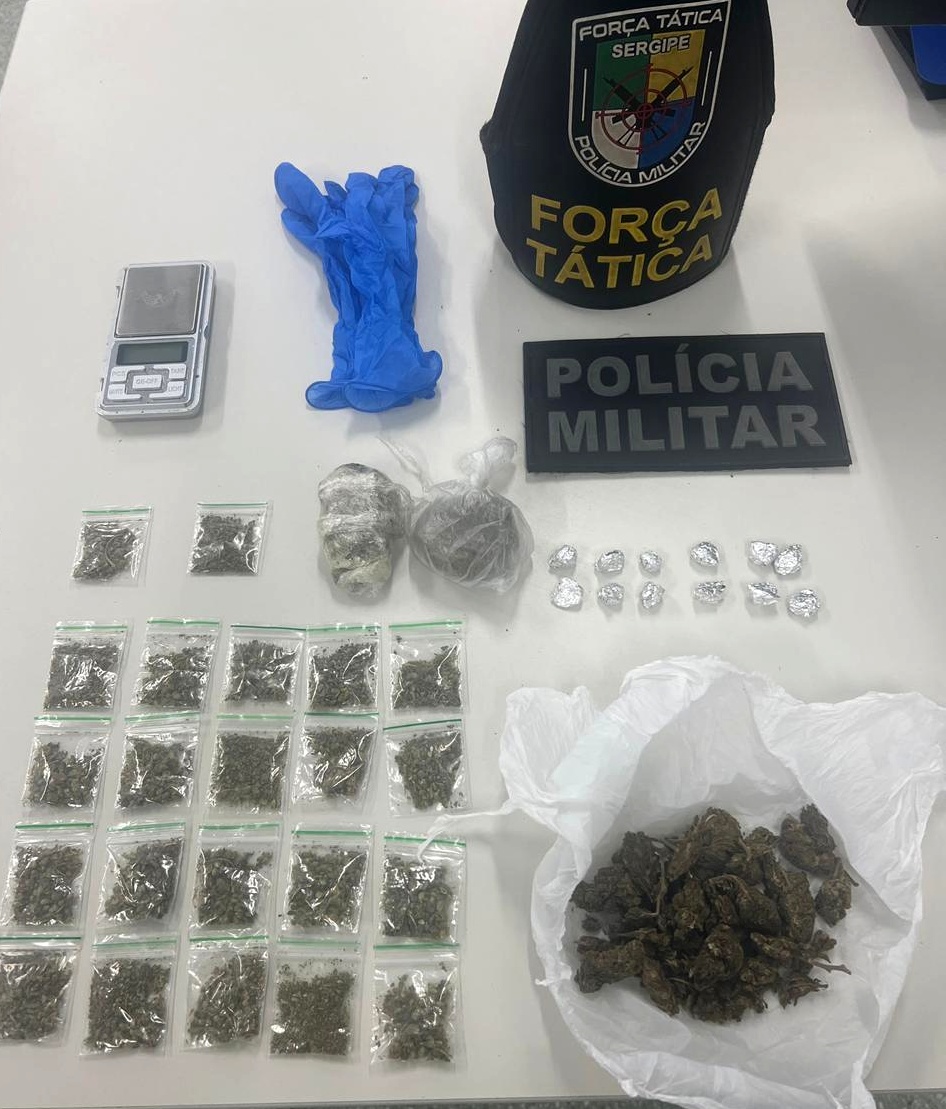 Diante da fundada suspeita, os policiais efetuaram a abordagem e, durante a busca pessoal, encontraram 12 pedras de crack e 10 invólucros plásticos contendo maconha, todos prontos para comercialização.