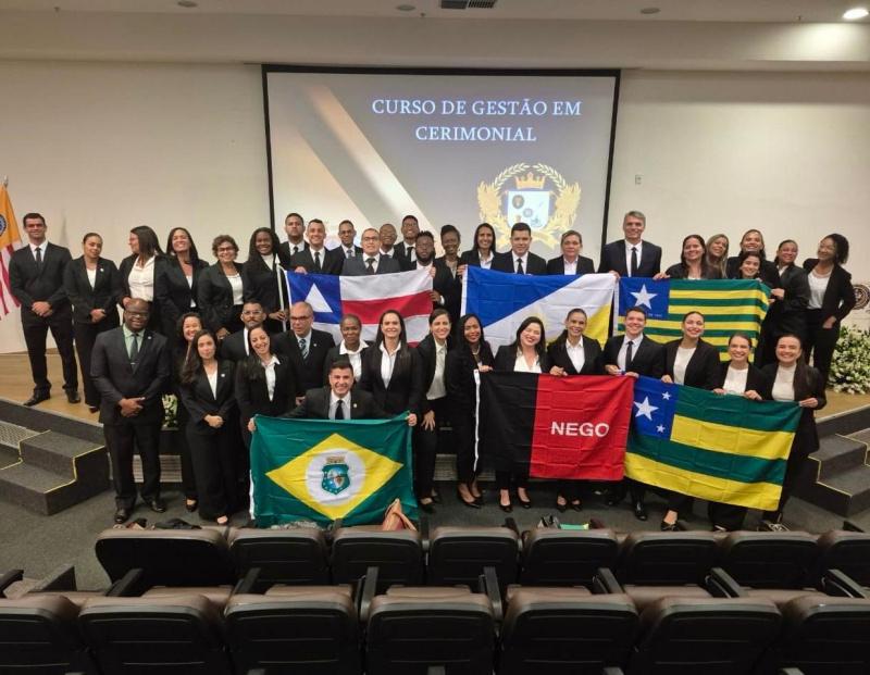 Na solenidade de encerramento, os formandos dos estados do Tocantins, Paraíba, Ceará, Piauí, Sergipe e Bahia receberam o brevê de gestão em cerimonial, símbolo da responsabilidade de aplicar as diretrizes do cerimonial público e privado em suas Instituições.