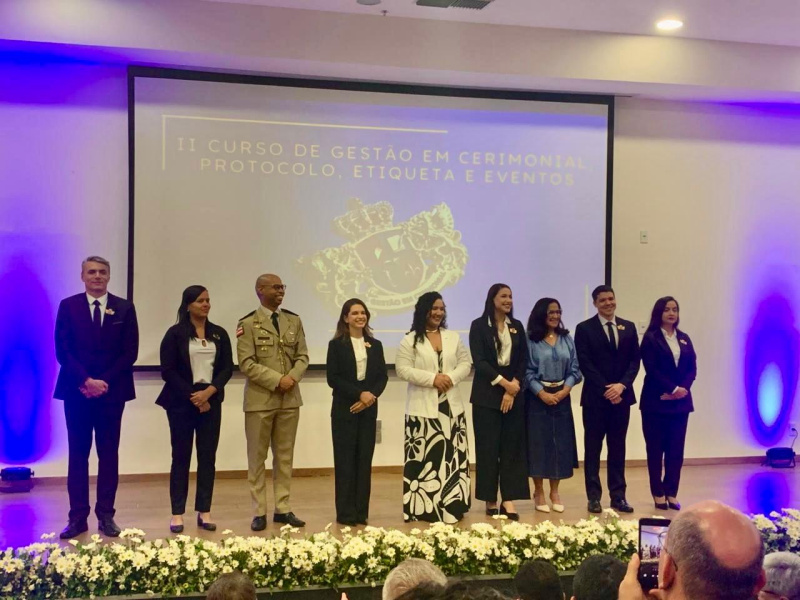 Realizado ao longo de duas semanas, o curso abordou temas essenciais para a excelência em eventos institucionais, incluindo: Cerimonial e Protocolo, Comunicação, Oratória, Produção Textual e Digital, Etiqueta Social, além de Planejamento e Organização de Eventos.