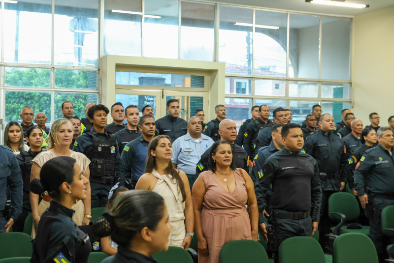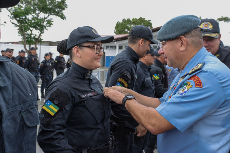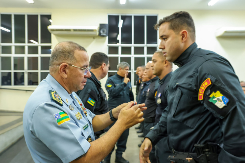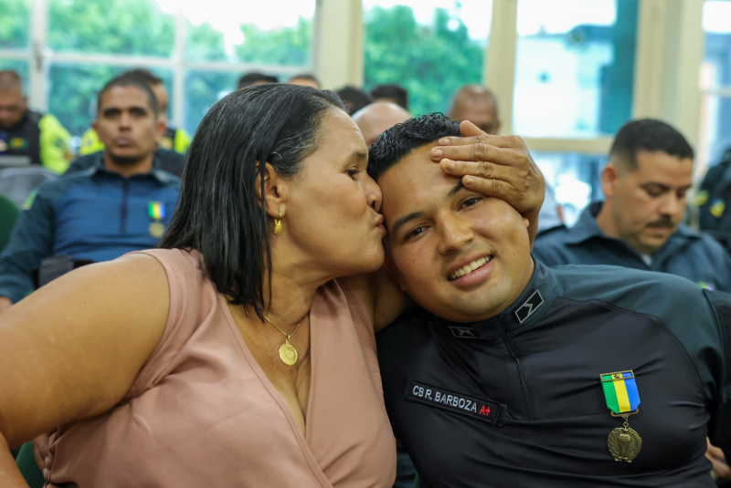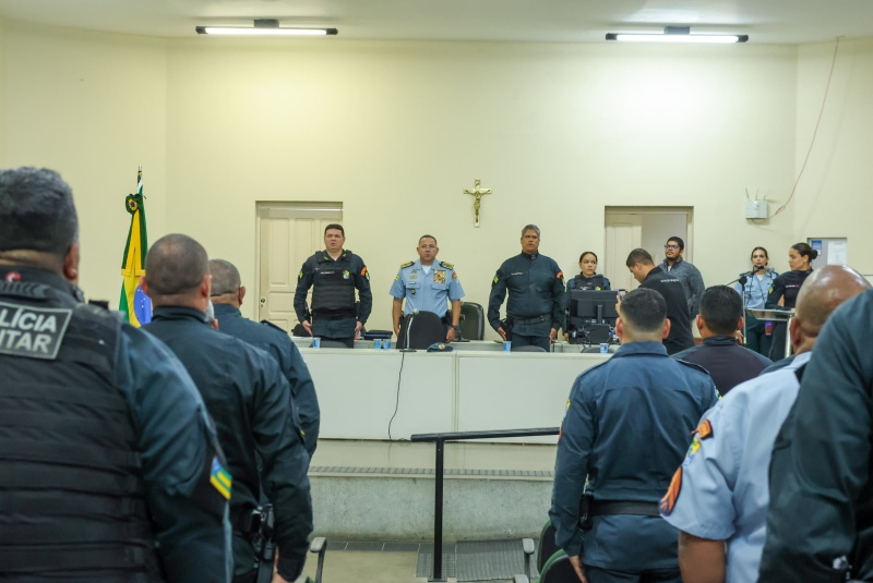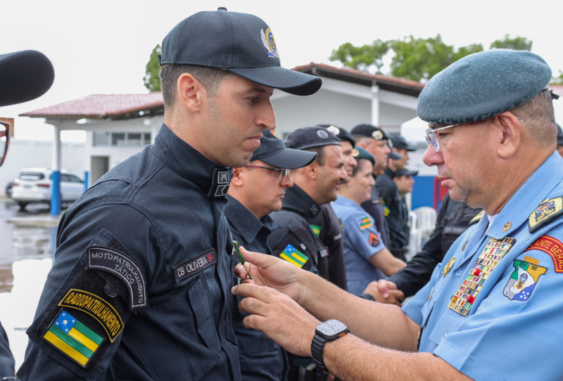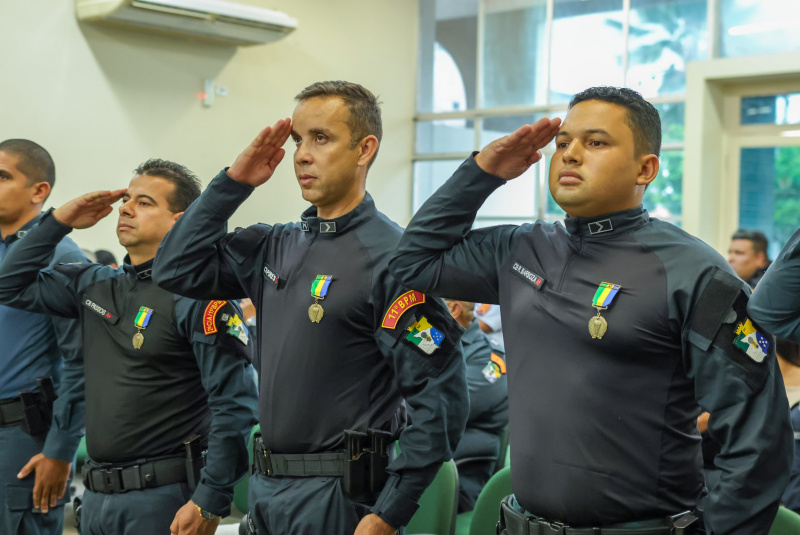Durante os atos solenes, policiais militares foram agraciados com medalhas que simbolizam diferentes fases e méritos da carreira: