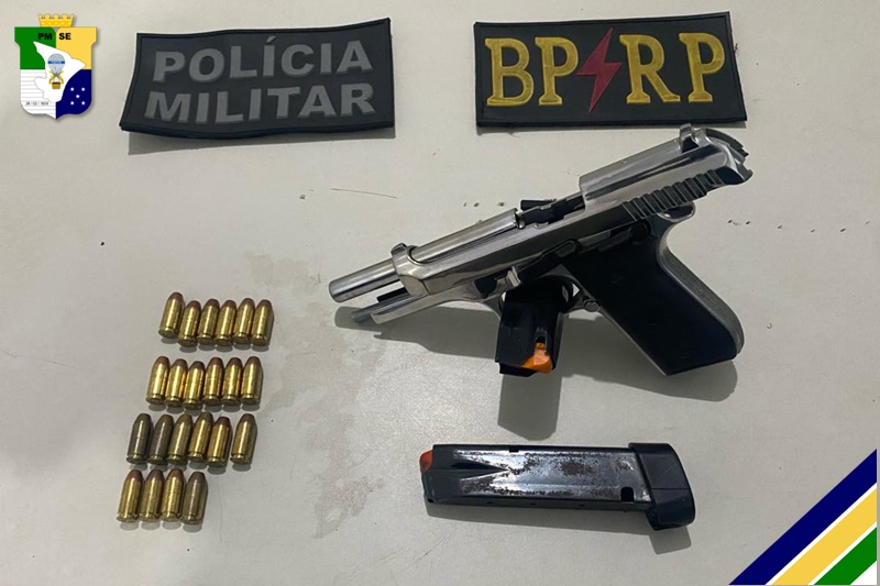 Com base na informação, os militares deslocaram-se até o endereço citado e confirmaram a denúncia. Ao notar a presença policial, o infrator jogou a pistola e tentou evadir-se, mas foi interceptado pelos policiais.