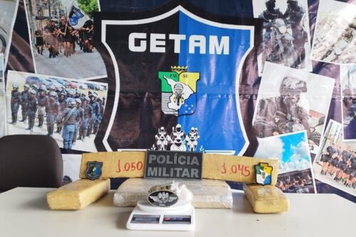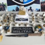 Na residência onde ele tentou se esconder, os policiais apreenderam sete tabletes de substância análoga à maconha, uma balança de precisão, uma faca e material para embalar o entorpecente.
