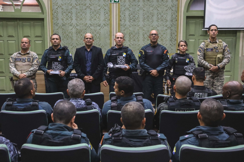 A mesa diretora da solenidade foi composta por autoridades da Corporação diretamente envolvidas na capacitação, incluindo o coronel Wembley Gois Tobias, chefe da 2ª Seção do Estado-Maior (PM2); o coronel Gilberto Melo, chefe da 3ª Seção do Estado-Maior (PM3); o major Weniston Queiroz, comandante do Batalhão de Operações Especiais (BOPE); e a major Belisa Melo de França, coordenadora do curso e subcomandante do BOPE.