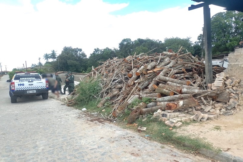 Segundo informações, o flagrante aconteceu durante fiscalização com órgãos ambientais, e o responsável não possuía autorização para armazenamento da madeira.