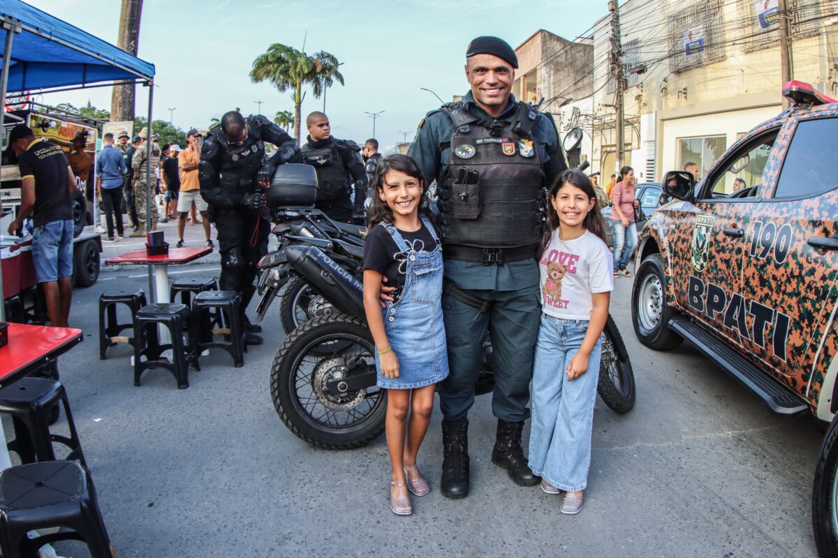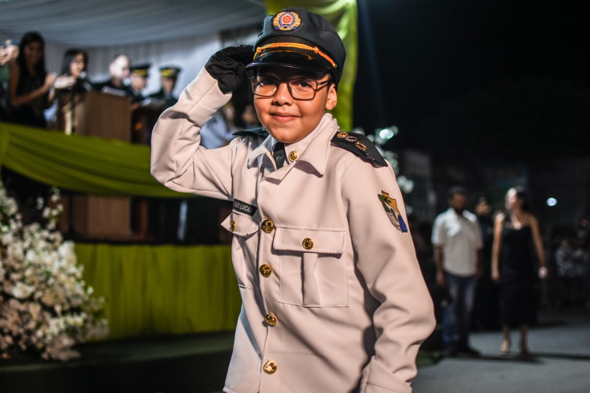 A comemoração foi finalizada com a passagem de crianças utilizando uniformes de diversas unidades da Polícia Militar, com muita elegância e respeito à instituição.