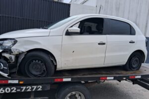 Pouco tempo depois, os policiais localizaram o carro suspeito. Apesar do acionamento dos sinais luminosos e sonoros da viatura, o motorista ignorou a ordem de parada e saiu em alta velocidade.