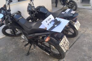 Ao consultar os veículos, foi constatado o roubo. Os suspeitos estavam ainda com quatro aparelhos telefônicos e uma pequena quantia em dinheiro. Segundo eles, a moto a BROS havia sido subtraída na Colônia Treze, em Lagarto, e a CG no Povoado Moendas, em Salgado. Eles estavam com uma pistola airsoft. Foram presos e encaminhados, juntamente com o material recuperado, para a delegacia.