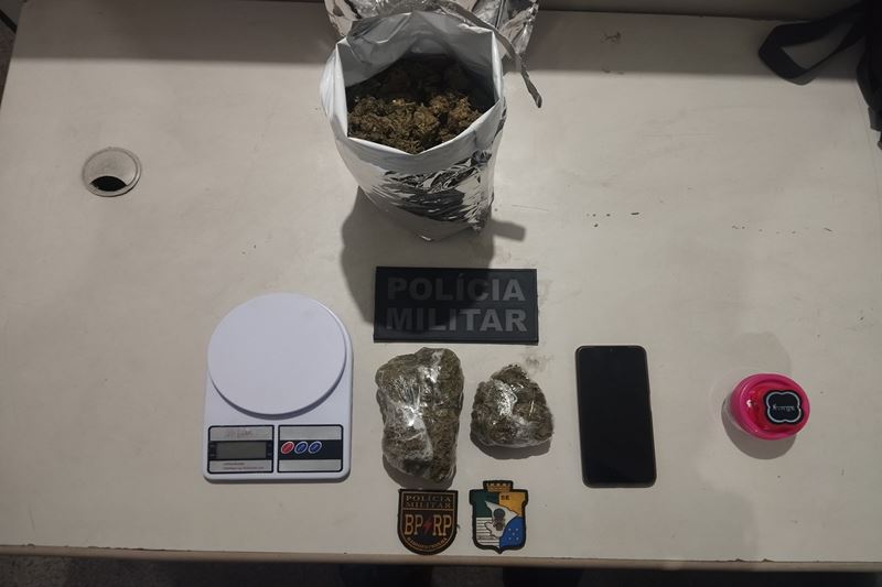Momentos depois, ao chegar na casa, os militares prenderam outro homem em posse de 500g de maconha e uma balança de precisão.