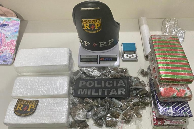 Quatro quilos de cocaína, 115 invólucros, mais dois quilos e 700 gramas de maconha, um caderno com anotações e duas balanças de precisão foram apreendidas no interior do veículo.
