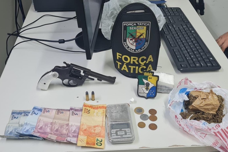 10 de janeiro de 2022Neste domingo, 9, policiais militares da Força Tática do 5º Batalhão de Polícia Militar prenderam um homem por ameaça e apreenderam drogas e uma arma de fogo no conjunto Fernando Collor, município de Nossa Senhora do Socorro.