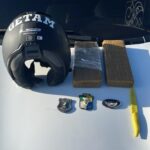 Durante a abordagem policial, o homem foi flagrado portando uma faca de serra escondida na roupa. Na sequência, dentro de uma sacola abandonada a poucos metros pelo suspeito, os militares encontraram fios elétricos, uma serra e um pé de cabra.