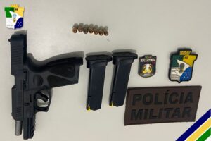 O homem afirmou não ter porte de arma e o caso foi encaminhado à Delegacia para a adoção das medidas cabíveis.