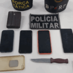 Ao perceber a ação a presença policial, o suspeito arremessou um objeto dentro do imóvel. No local, foram apreendidos invólucros de maconha e cocaína, munição, uma balança de precisão e um registro de com anotações, além de uma máscara.