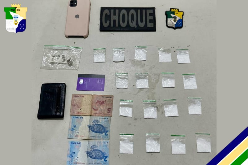 Durante a abordagem, como se tratava de uma mulher, a equipe policial pediu para que ela esvaziasse seus bolsos e encontraram 17 papelotes de substância semelhante à cocaína em sua carteira.