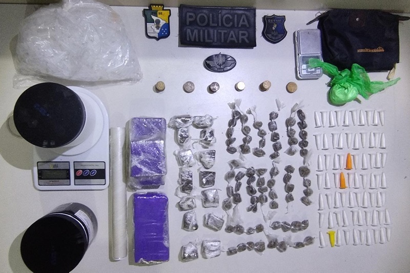 Inicialmente, o homem afirmou que era apenas usuário, mas logo em seguida, confessou que comercializava os entorpecentes. Na residência dele, os policiais encontraram três tabletes e 85 trouxinhas de maconha, um pote com 330 gramas de cocaína, 70 pinos, também contendo cocaína, além de duas balanças de precisão e material utilizado para embalar os entorpecentes.