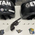 O fato ocorreu durante policiamento ostensivo e preventivo na localidade. No momento, o suspeito, ao perceber a presença policial, tentou se desfazer de pinos de cocaína, um revólver calibre .38 com duas munições intactas e novecentos e oito reais.