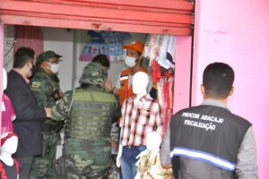 O trabalho foi realizado em áreas do centro comercial que concentração maior número de pessoas e lojas que persistem em prosseguir com as atividades comerciais, contrariando do decreto e as determinações dos órgãos de saúde.