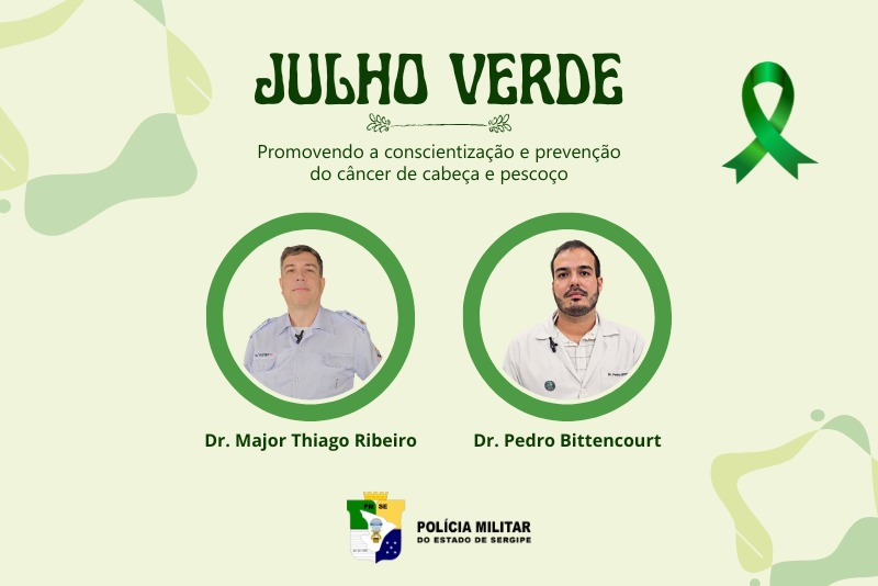 12 de julho de 2024O mês de julho é nacionalmente marcado pelo impulsionamento das orientações voltadas para a conscientização do câncer de cabeça e pescoço. Em virtude dessa mobilização, a Polícia Militar de Sergipe debruçou-se sobre as percepções técnicas de dois médicos especialistas, a fim de tornar as informações dessa patologia, bem como dos seus métodos preventivos, mais acessíveis não só para militares, mas também para a sociedade de forma geral.