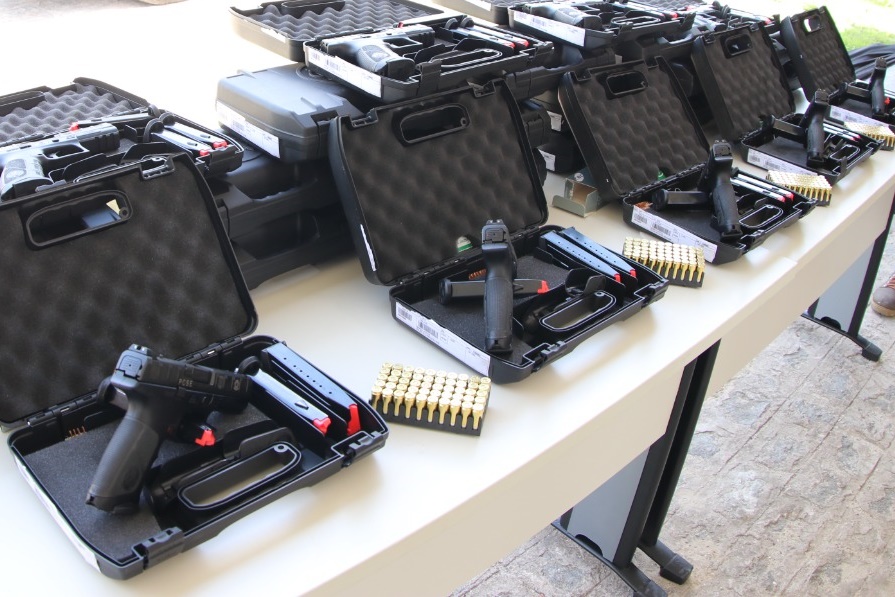 O Governo do Estado entregou 853 novas pistolas da marca Beretta, 64 mil munições, 100 granadas de pimenta, 200 granadas de fuzil e 2.500 projéteis de borracha para armas portáteis. No total, um investimento mais de R$ 2,1 milhões, com verbas do Fundo Nacional da Secretaria da Segurança Pública, emendas parlamentares e convênios firmados pela SSP. Os secretários de Segurança Pública, João Eloy, e do Desenvolvimento Urbano e Sustentabilidade, Ubirajara Barreto, também estavam presentes.