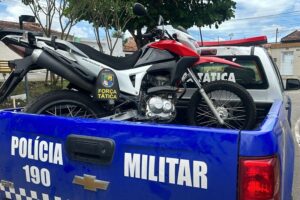 A Força Tática foi acionada por volta das 11h, pela supervisão do batalhão, que alertou para a situação de uma moto estacionada em via pública.