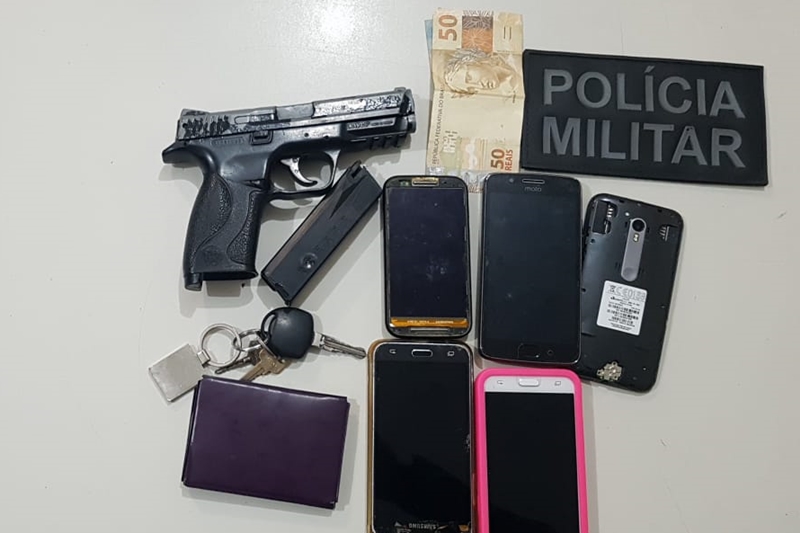 Os militares foram acionados pelo Ciosp para averiguar uma ocorrência de roubo a pessoas, com a participação de três homens em um automóvel, nas imediações da BR-235. Durantes as buscas na região, a guarnição interceptou um veículo GM Corsa Classic e após abordagem, foram encontrados uma réplica de pistola calibre .40, além de três aparelhos celulares roubados.
